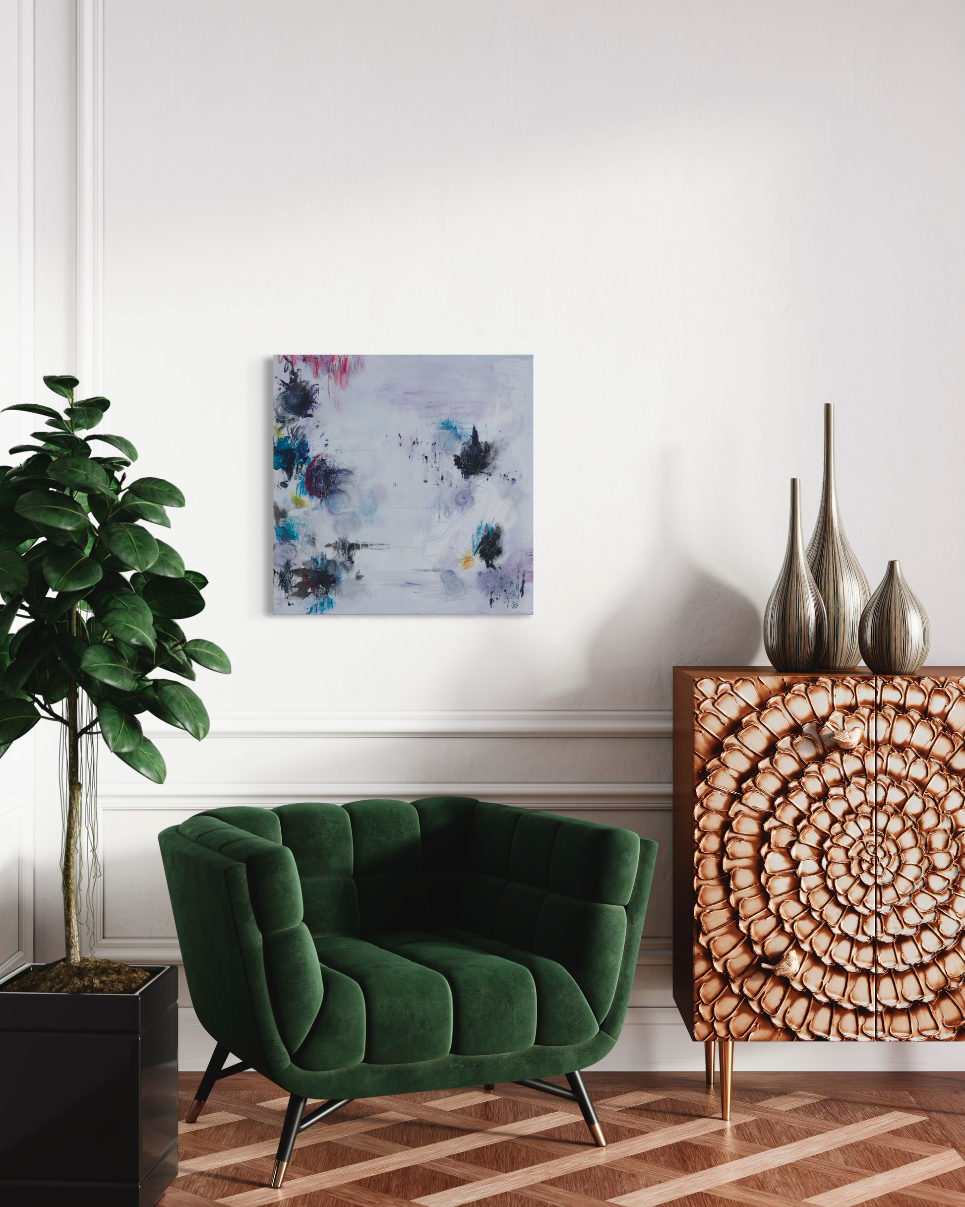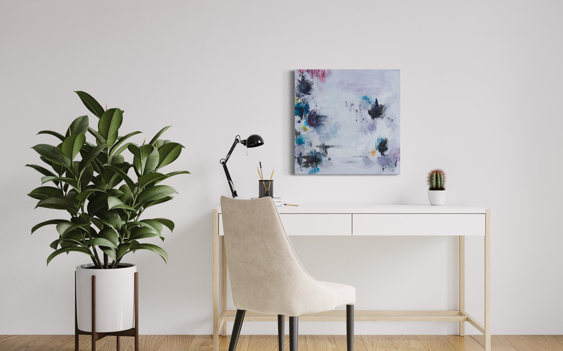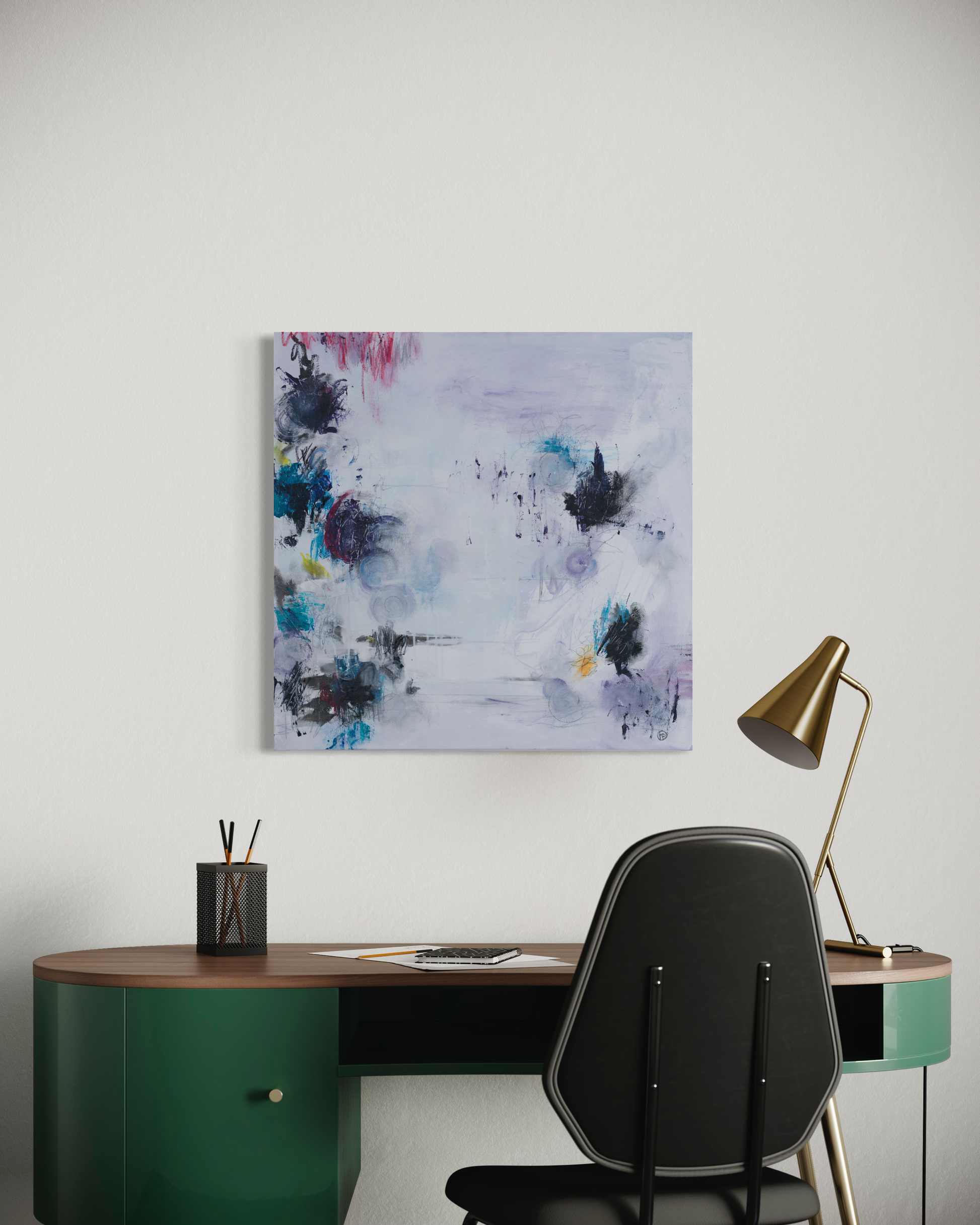 Acrylic, pencil and mixed media on canvas